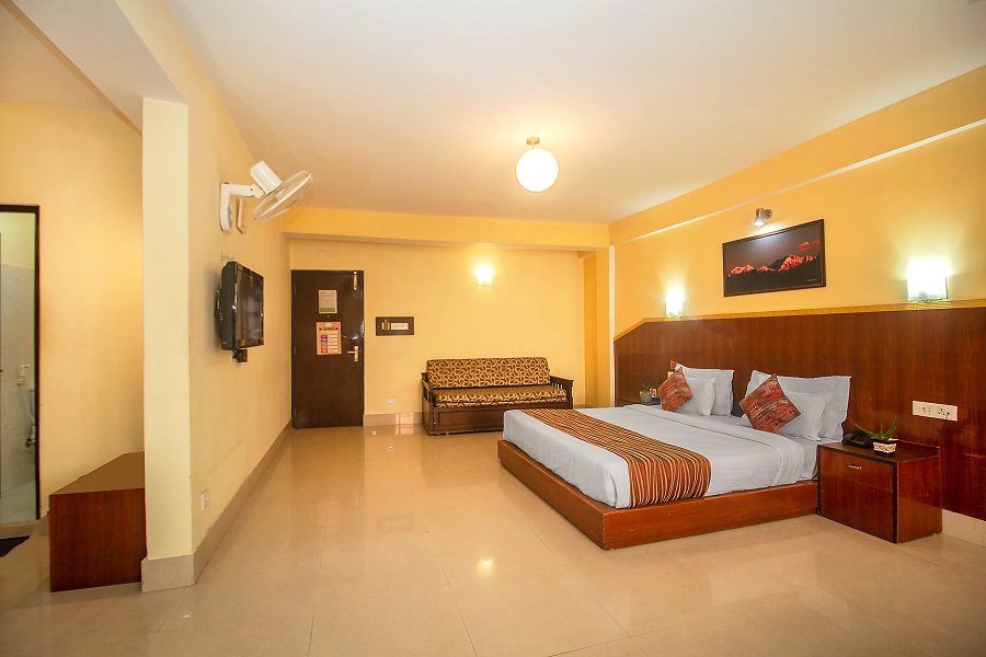 The Greendale Super Deluxe Room offers a perfect blend of luxury and comfort with tasteful interiors and modern amenities. Guests can enjoy stunning views of the surrounding hills from large windows designed to bring in natural light.
